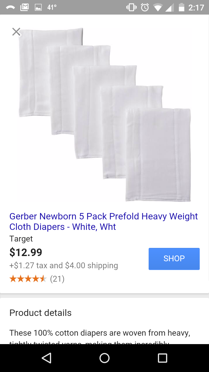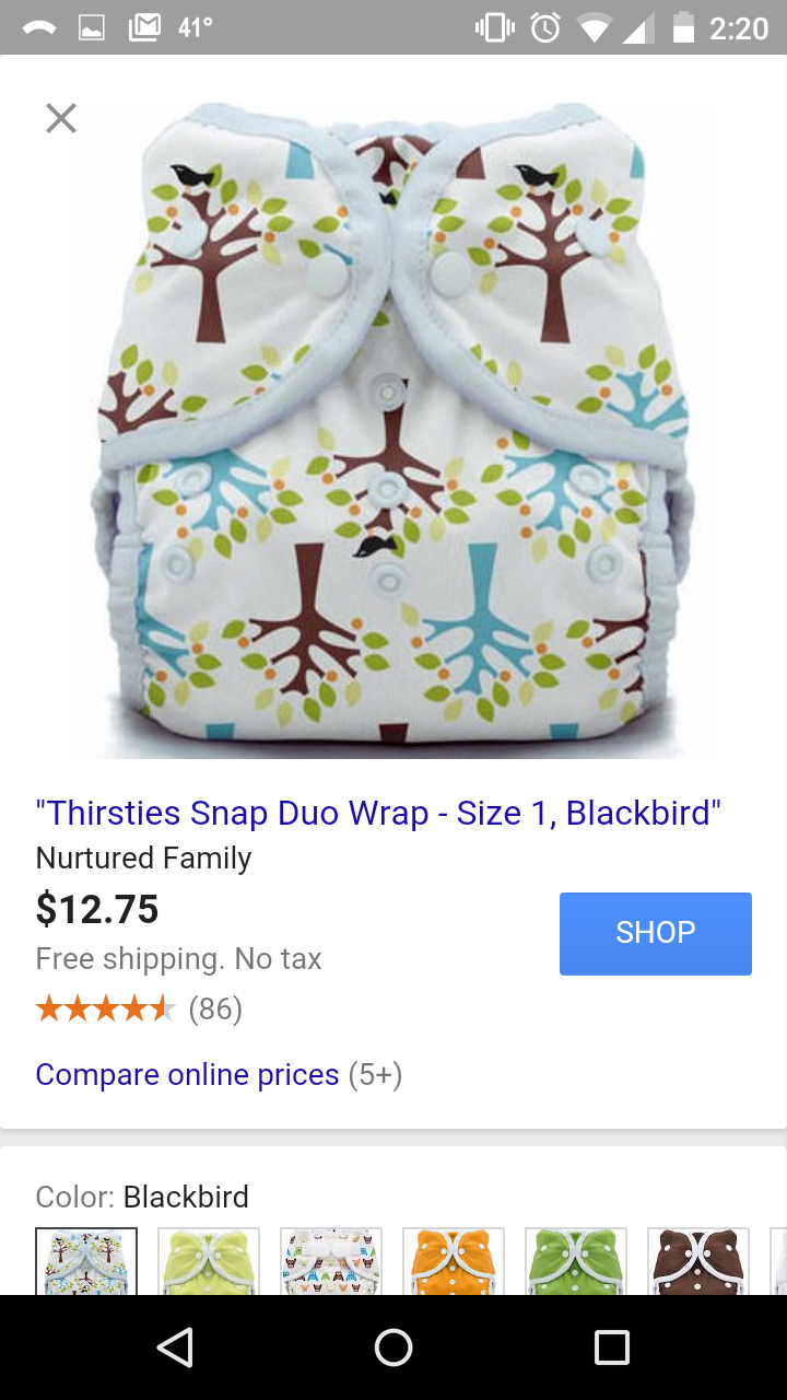 Now there ARE factors that can add to that cost such as size increase* needing more absorbency (I use the Thirsties hemp inserts), snappis breaking, lots of poopy diapers, sick baby = more poops…etc. But again, you’re looking at a one time cost as opposed to monthly/annually recurring cost. There are also ways to buy disposable diapers in bulk, but assuming you want cloth for the sake of the environment, bulk disposables are irrelevant. And, assuming parents place these diapering items on a baby registry, there’s the potential to get your cloth diapering needs at no cost to yourself.