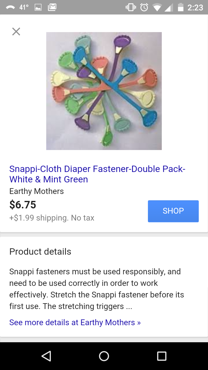 Again using the numbers I found online, I could get 6 leak-proof covers for $76.50. Then you factor in the cost of the rubber Snappi closures, 6 for $8.74 (these are also reusable). That brings my cloth diapering total to a one time cost of $265.94 Already, without accounting for water and laundry detergent usage, you save on average $1,293.58 in the first year. This is a modest estimate strictly on diaper needs, not including wipes.