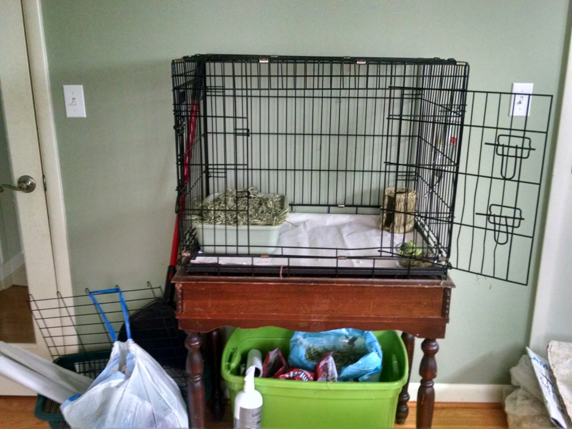 Our reasons for doing so are because 1) it has a hardwood floor so I can sweep it clean instead of vacuuming, which stresses her out. 2) it has a door which can be shut so she has space to safely explore without doggies or baby startling her. 3) it should help distance her from the loud noises of doggies and baby that stress her out. Overall, it was an anti stress attempt. I will also be getting her some wooden toys to gnaw on should the issue be her teeth are bothering her. So far she seems much less skittish. We shall see how it works long term.