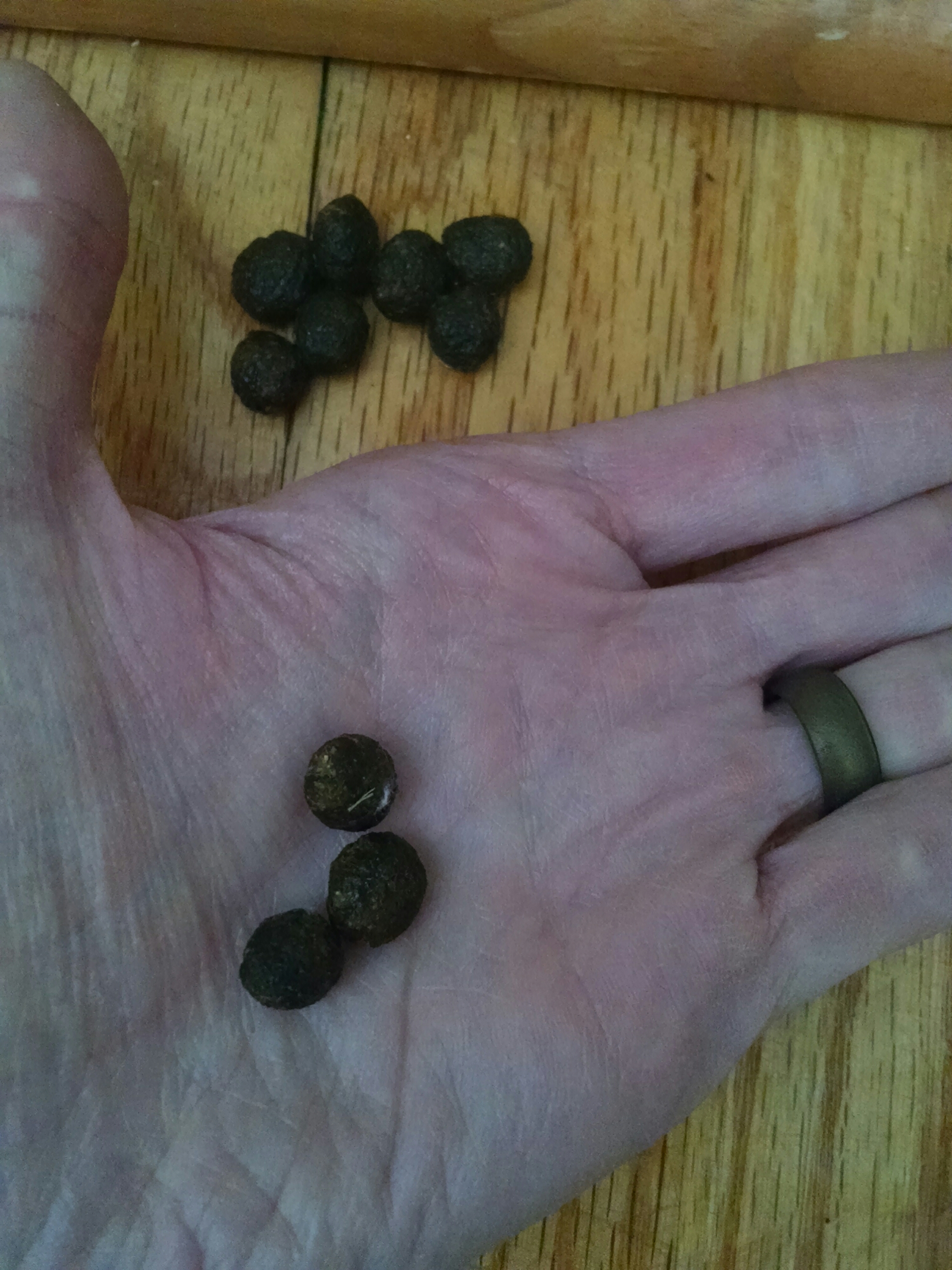 But, it’s still slightly dark in color and moist instead of very dry. So that goes back to the protein conundrum, which I’ve determined is solved by the correct types of hay and percentages of protein in her pellets.