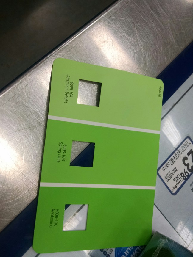 Once that’s done, I’ll paint. I let my little man choose his own paint chip color…