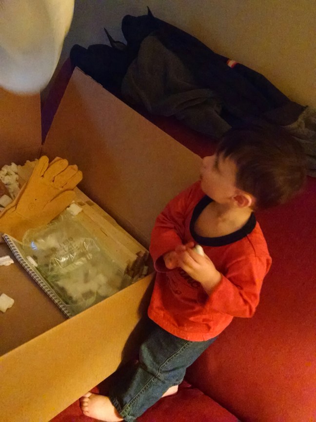 You’ll notice there aren’t any honey supers for the bees to store honey in. That’s partially because they were sold separately from the beginner kit we bought, which only included the brood box, and partially because we don’t need it yet because we don’t have the bees until spring.