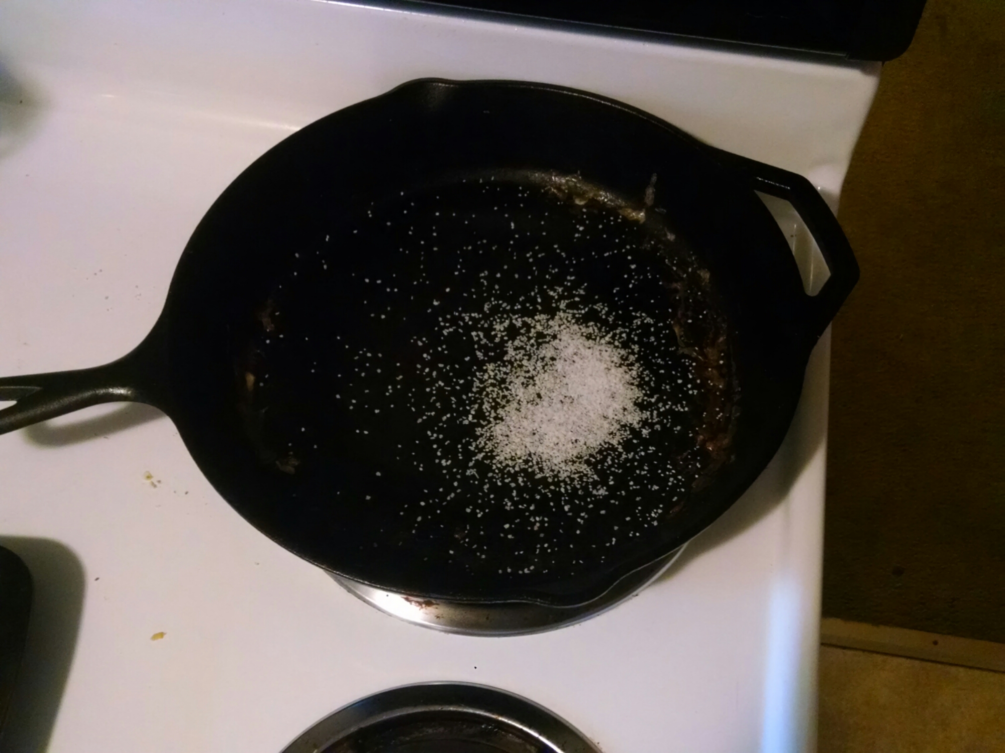 Sprinkle about a teaspoon of kosher salt in the skillet