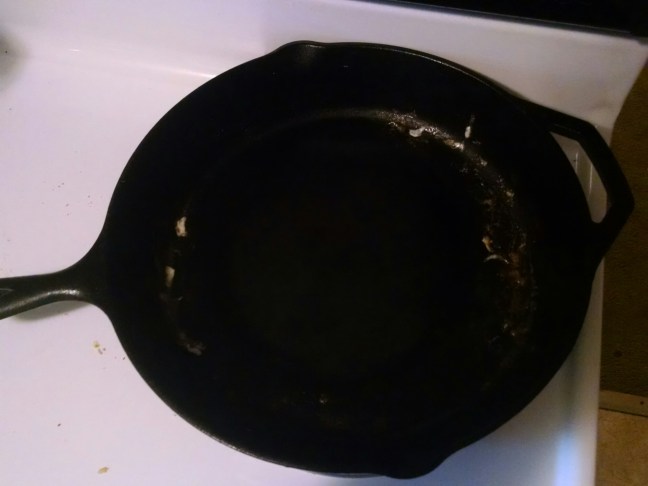 The truth is, cast iron occasionally gets a bit dirty. Some may say that a cast iron skillet that is appropriately seasoned will never have food stick to it. I disagree. In my experience, I frequently fry eggs in my cast iron skillet, which is adequately and correctly seasoned, and yet somehow sticky bits of egg manage to cling to it.