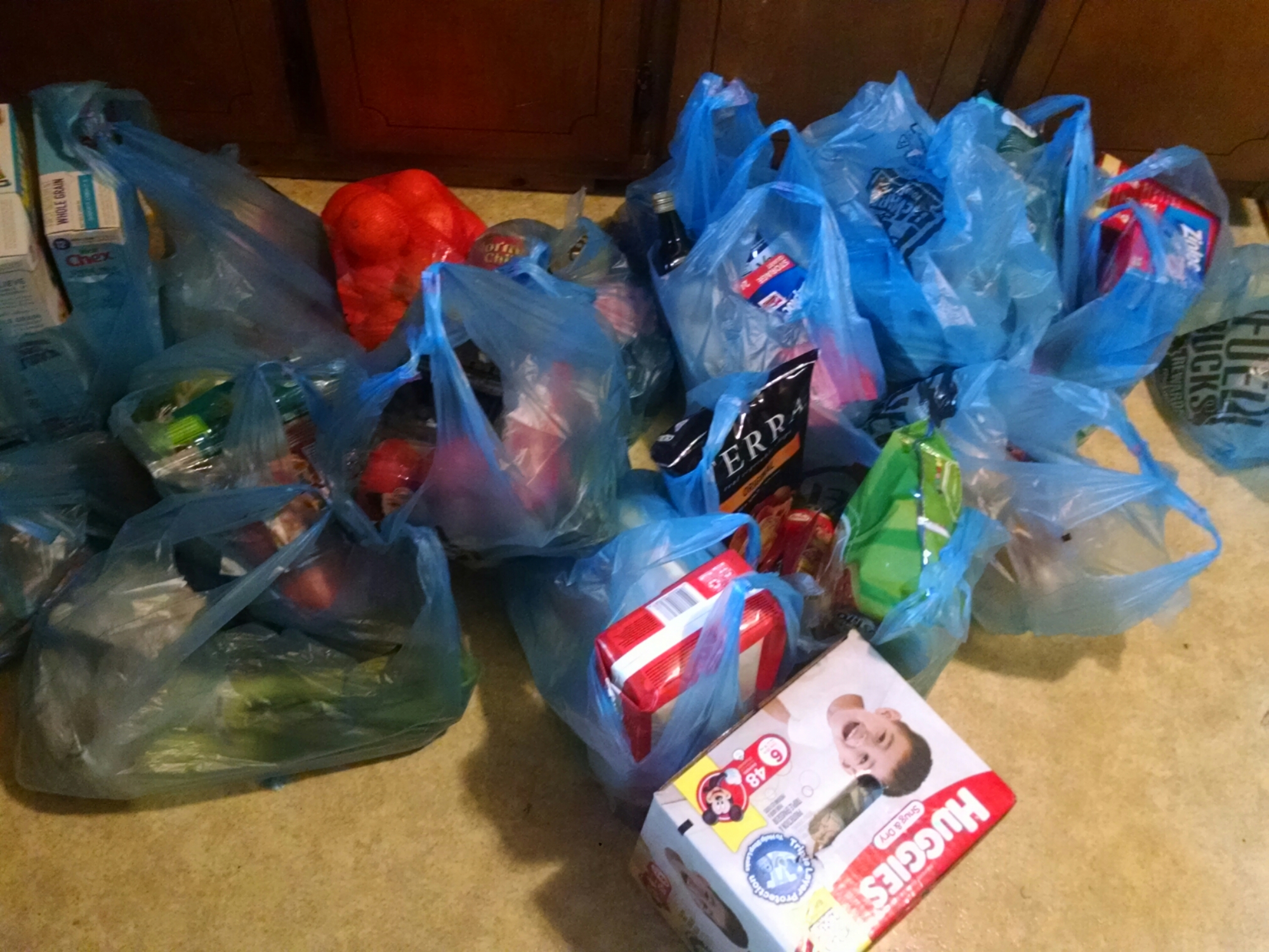 Now the average trip to the grocery store costs us between $376-$460 for our haul of 2 weeks worth of food, give or take coupons and frequent shopper discounts.