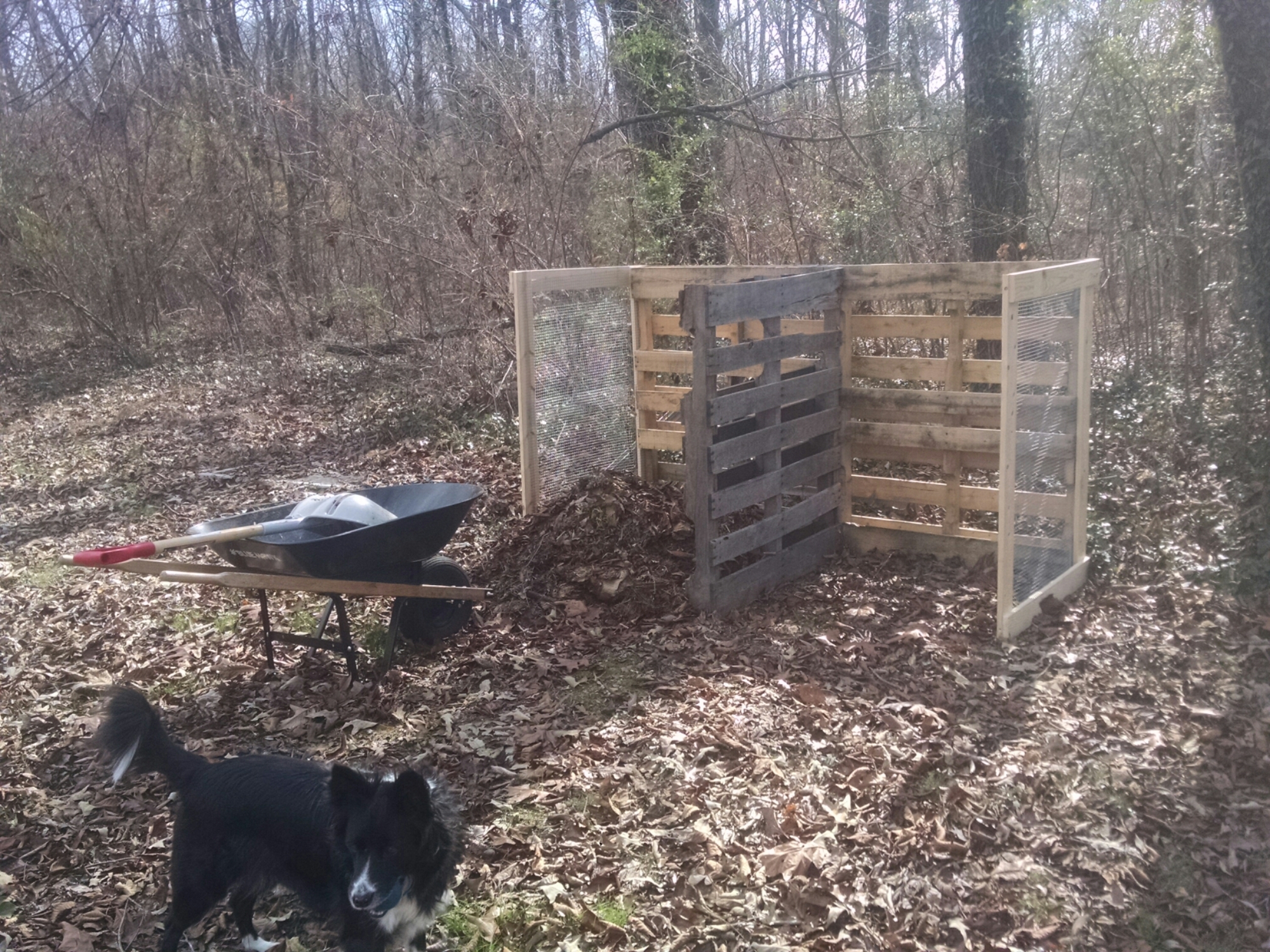 There was a hiccup in our measurements though. My husband measured and cut the boards to the dimensions I specified, but I hadn’t made clear how they were going to be put together, so long story short, we ended up with rectangles rather than squares. No big deal, they still do the job of containment, they just aren’t the same dimensions as the pallets. We can fix it down the road, but they work in the meantime because, all they’re doing is containing decomposing organic matter, so pristine isn’t really important to me.
