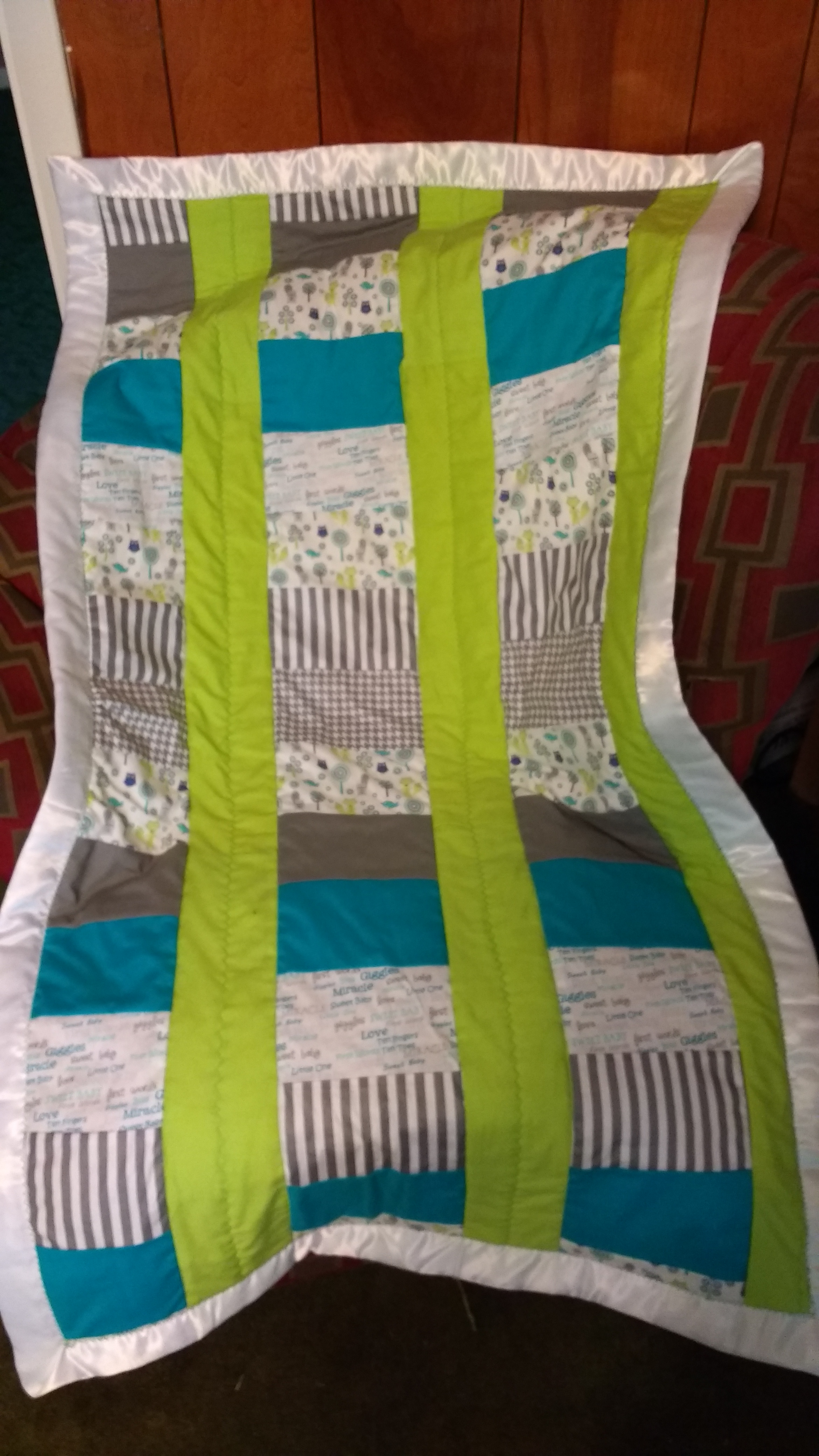 Today I finished Baby Ian’s quilt. He’s due at the end of July, so I’m not sure he’ll get a ton of use out of it before it cools down some, but my kiddos always liked being extra warm and snuggly regardless of the weather.