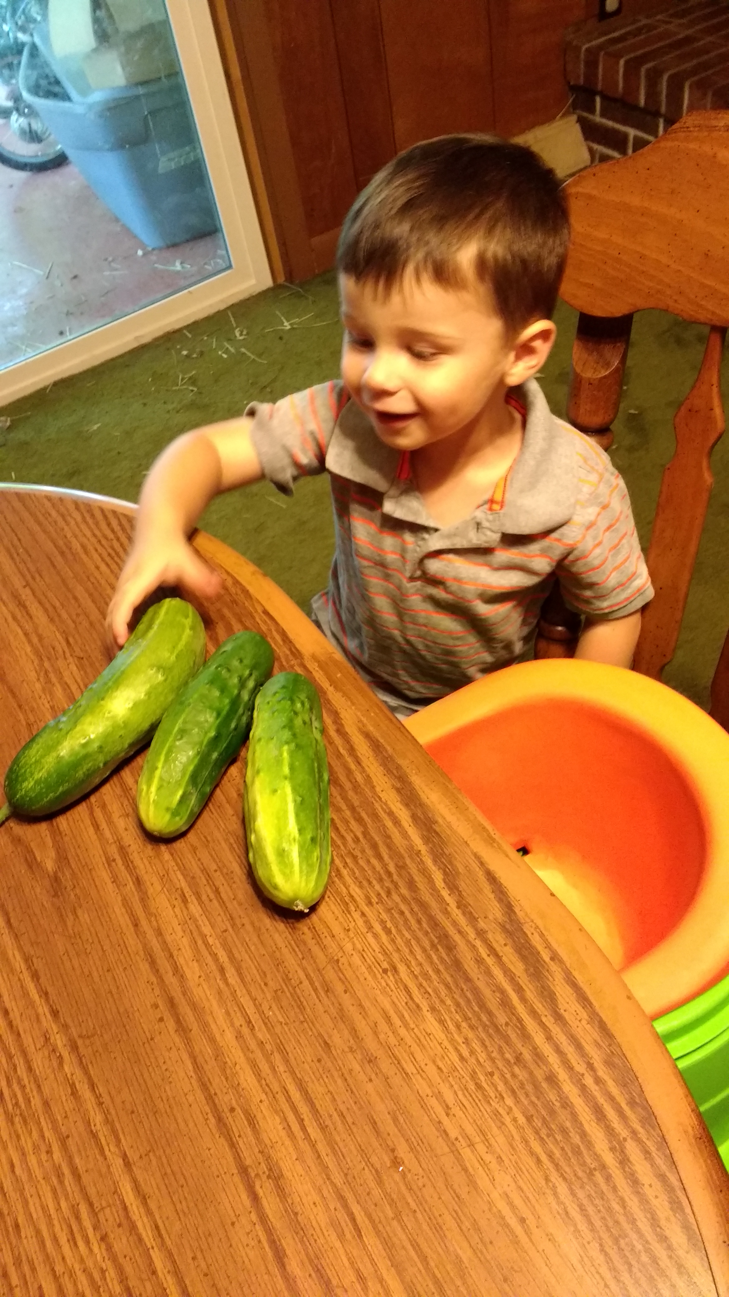 In the mean time, we’re waiting on our tomatoes to really begin to ripen, and enjoying an abundance of cucumbers and summer squash. Right now I’m getting about 3-4 per week off only 2 plants. So for pickling next year, I’ll probably try more like 4-6 plants. And so far I’ve canned 8 pints of pickles!