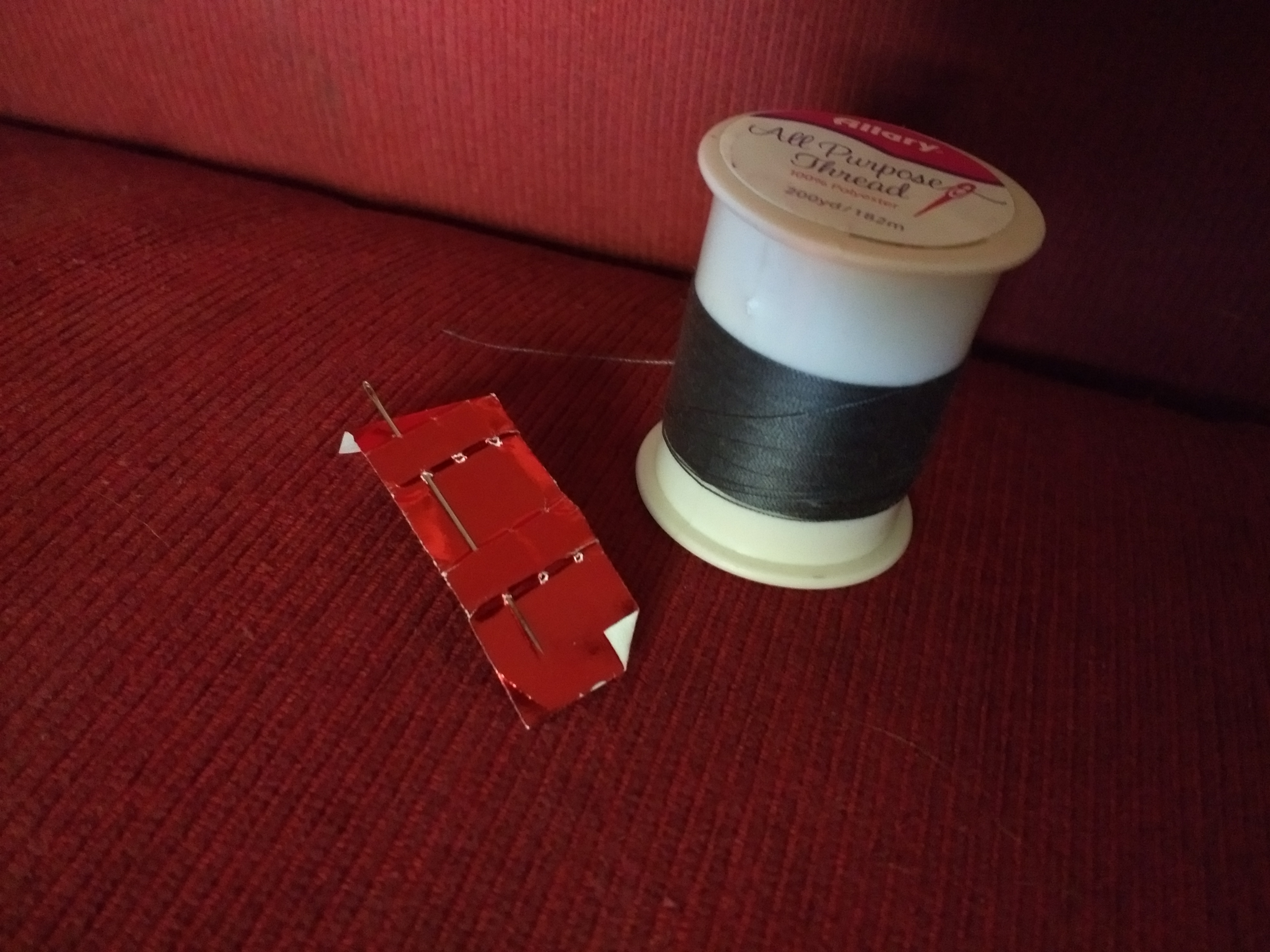 So I raided my husband’s sewing kit (he’s an excellent Marine) for a needle because I rarely do any hand sewing of my own. I got out my gray thread and set to work.