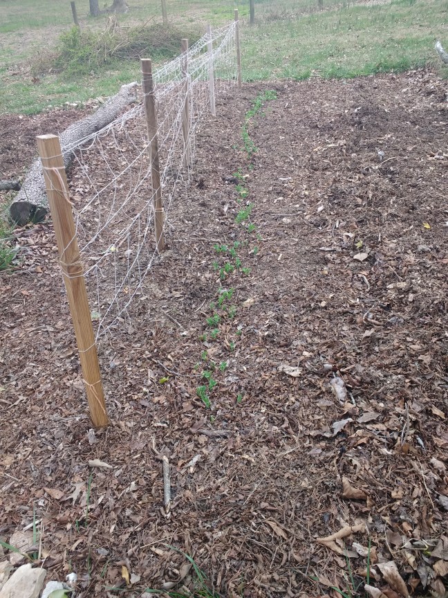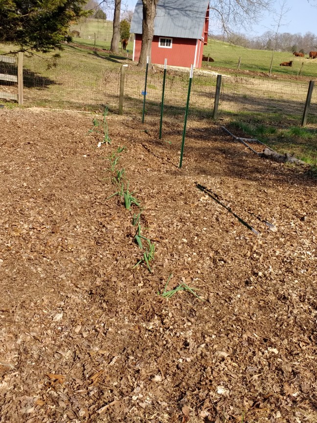 My husband and I got the peas trellised, and put our walking onions into a better row.