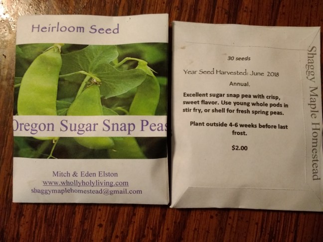 The next task will be putting away our heirloom Oregon Sugar Snap Pea seed.