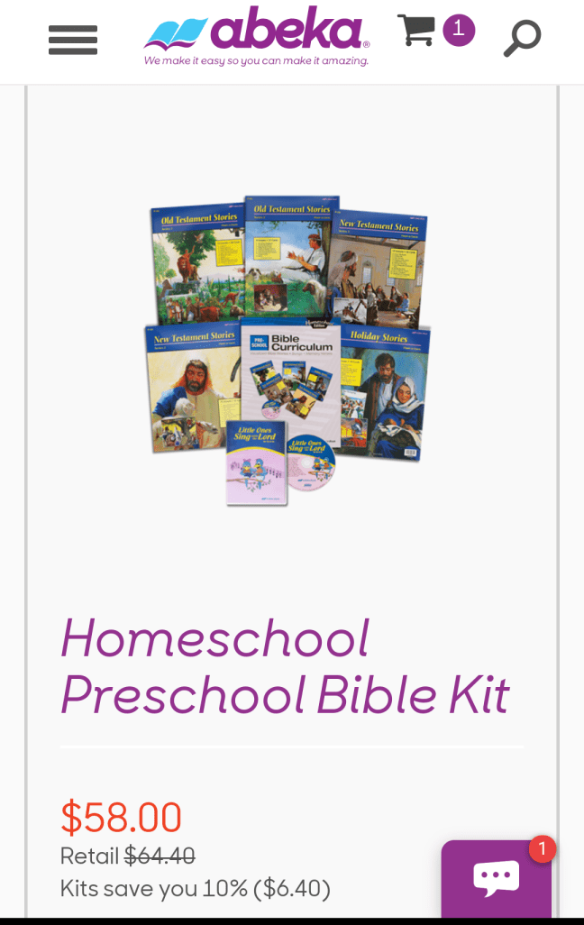 3.)Abeka– Pre-K homeschool Bible kit