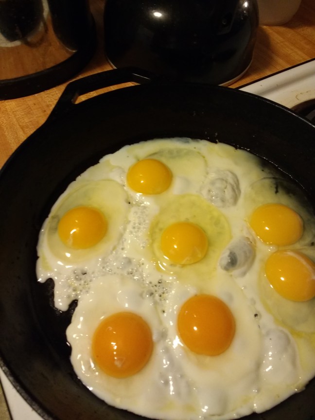 - Higher quality eggs– there is nothing like free-range eggs. They have good, hard shells, they stand up in the pan, they have firm orangey yolks (and whites for that matter) and they have flavor! If you’ve never had free range eggs, you probably don’t think eggs have flavor of their own. But they do. You’ve just gotten used to “fake” eggs.