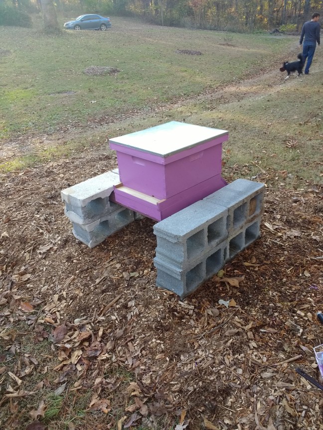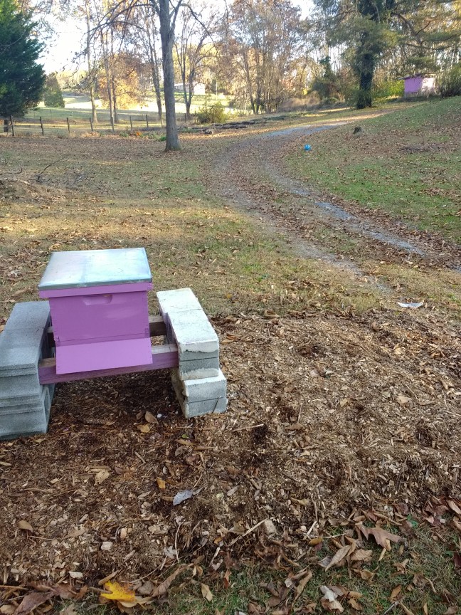 This afternoon in lieu of a nap, my oldest helped paint our bee hive. It matches our chicken coop, and I love it.