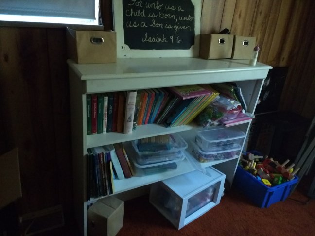 For now, I’m waiting on my shelving to arrive, and I’m focusing on getting rid of the clutter.