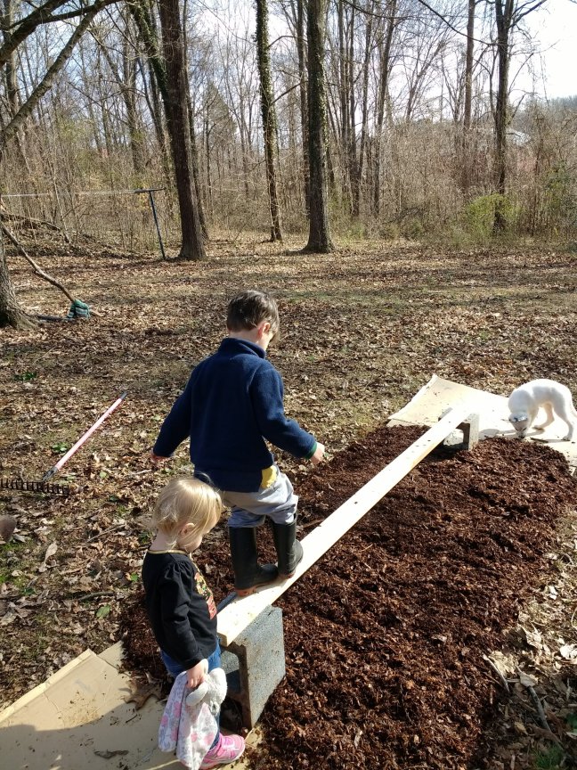 In building this I dreamed up plans for edible flower/strawberry beds around the playground for mid-play munchables throughout the warm seasons.
