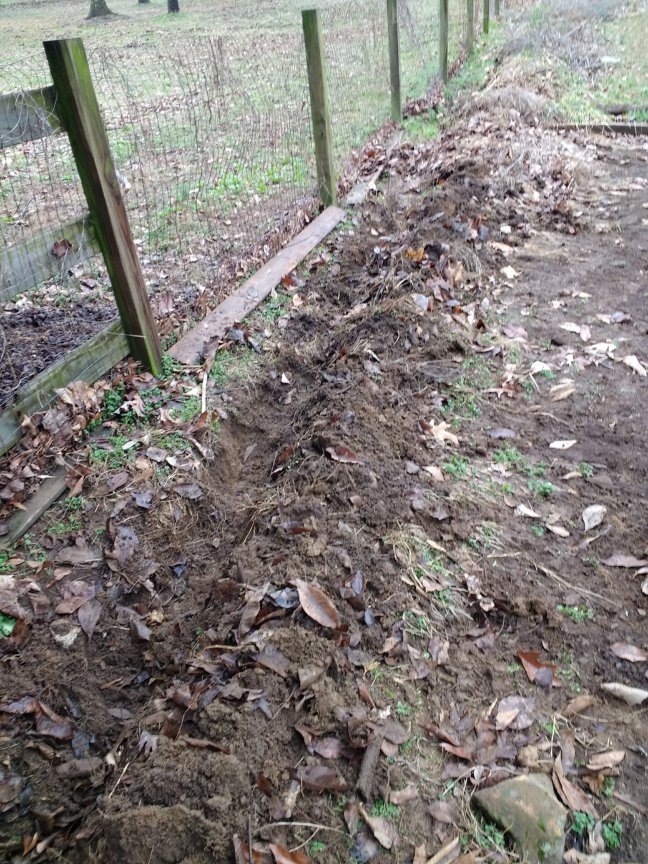 Then I extended the smaller fenceline swale, and deepened it. I’m going to put either pea gravel or mulch in/around it to help with drainage.