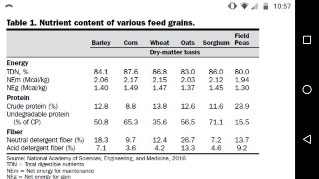 Corn, however, is broken down 8.8% protein, 9.7% NDF