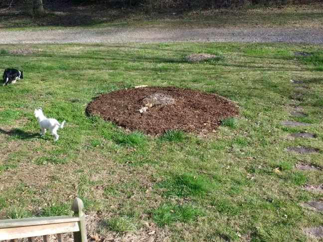 There’s a decent foundation of grass clippings, leaf mold, and newspaper. To that, yesterday we covered with 3 year old composted wood chips. My hope is that I’ll be able to grow hyssop, bee balm, German chammomile, lemon balm, and a few other things there. It gets great sun, and is near the front door for easy access. Not only that, but my hope is that it’s a charming focal point in the front yard. I’m going to add a rock border and I have a neat little planter to put in the center with some calendula.
