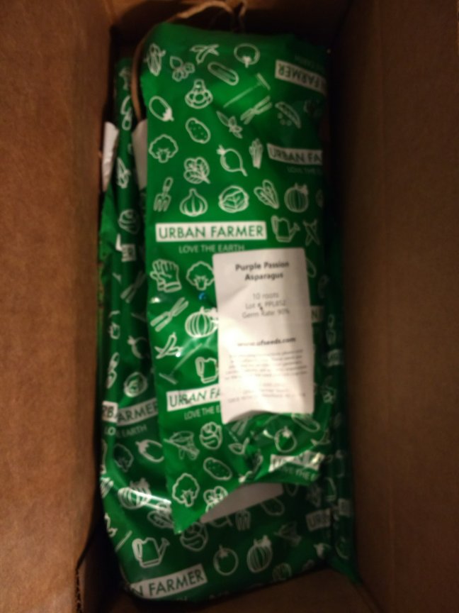 The Asparagus crowns arrived last week. So they went to live in the perennial bed with the strawberries. I companion planted some borage to draw pollinators as well.