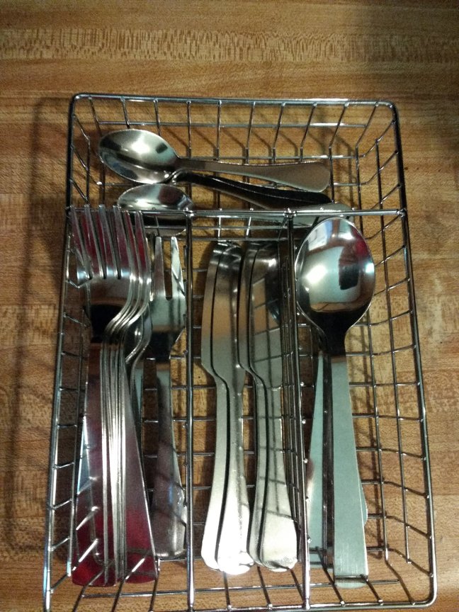 In addition to those, there were 6 smallish forks and 6 smallish spoons that came with the larger set I ordered on Amazon, so we have plenty of spares.