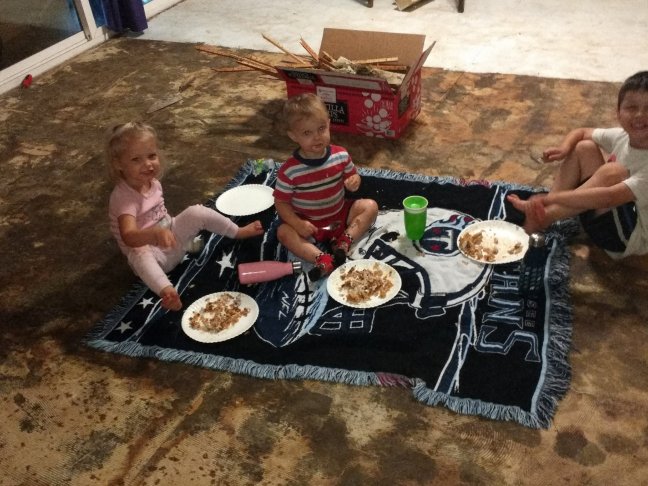 This makes things difficult for this mama. Mealtimes have been particularly challenging. but heck, if I’m going to get down to business and rip out paneling, I may as well take out the nasty carpet while I’m at it, right?