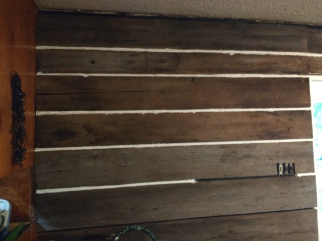 Busy, busy, busy! We've been cleaning, and repairing, and updating like crazy! We got the barn wood plank wall up, and I started filling the seams with joint compound. I had the idea to pipe it in like frosting and then smooth it with a little bitty putty knife, which worked exactly as easily as … Continue reading Farmhouse Renovations Progress