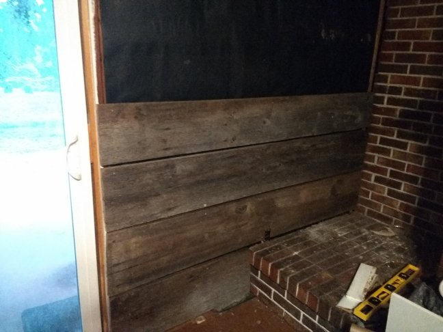 We’ve made progress on the wall, thanks to my husband, his dad, and my stepdad. The roof will be next! Once the new roof is on, we’ll finish up the interior ceiling.