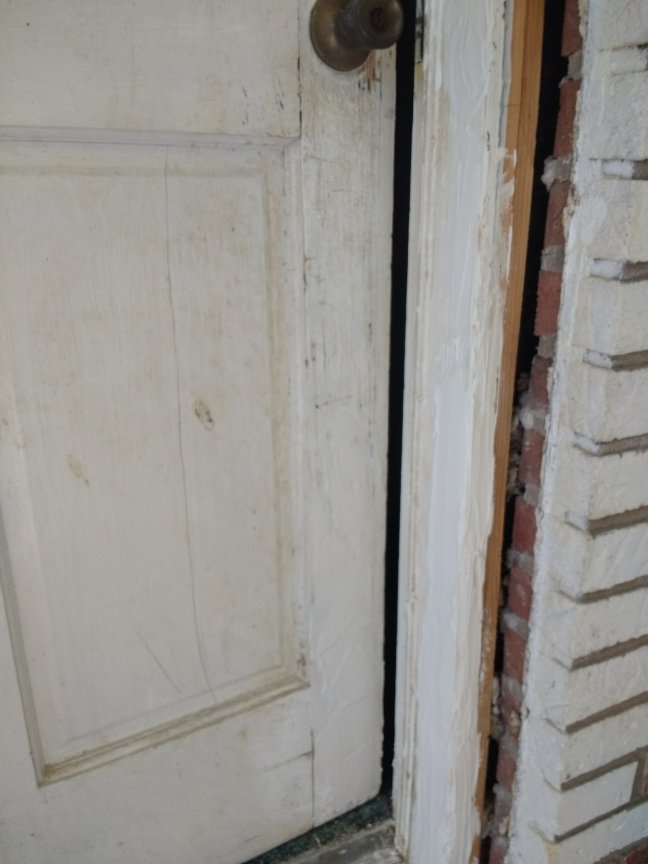 We got some new brick moulding and will be putting that up once I get the joint compound dry, sanded, and painted.