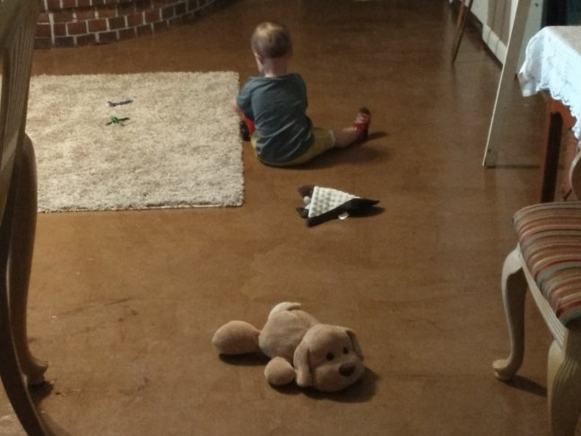 The floor is “temporary” and was done mostly to rid the house of allergens before Baby #4’s arrival in January. Long term we want hardwood throughout, but that can wait until we can do it right, and do it debt-free.