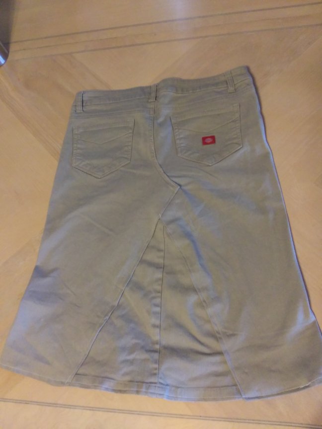 So I took the opportunity to hack and slash a pair of butt-hugging Dickies from my younger, less mom-bodied days and transition them into something more flattering: a skirt.