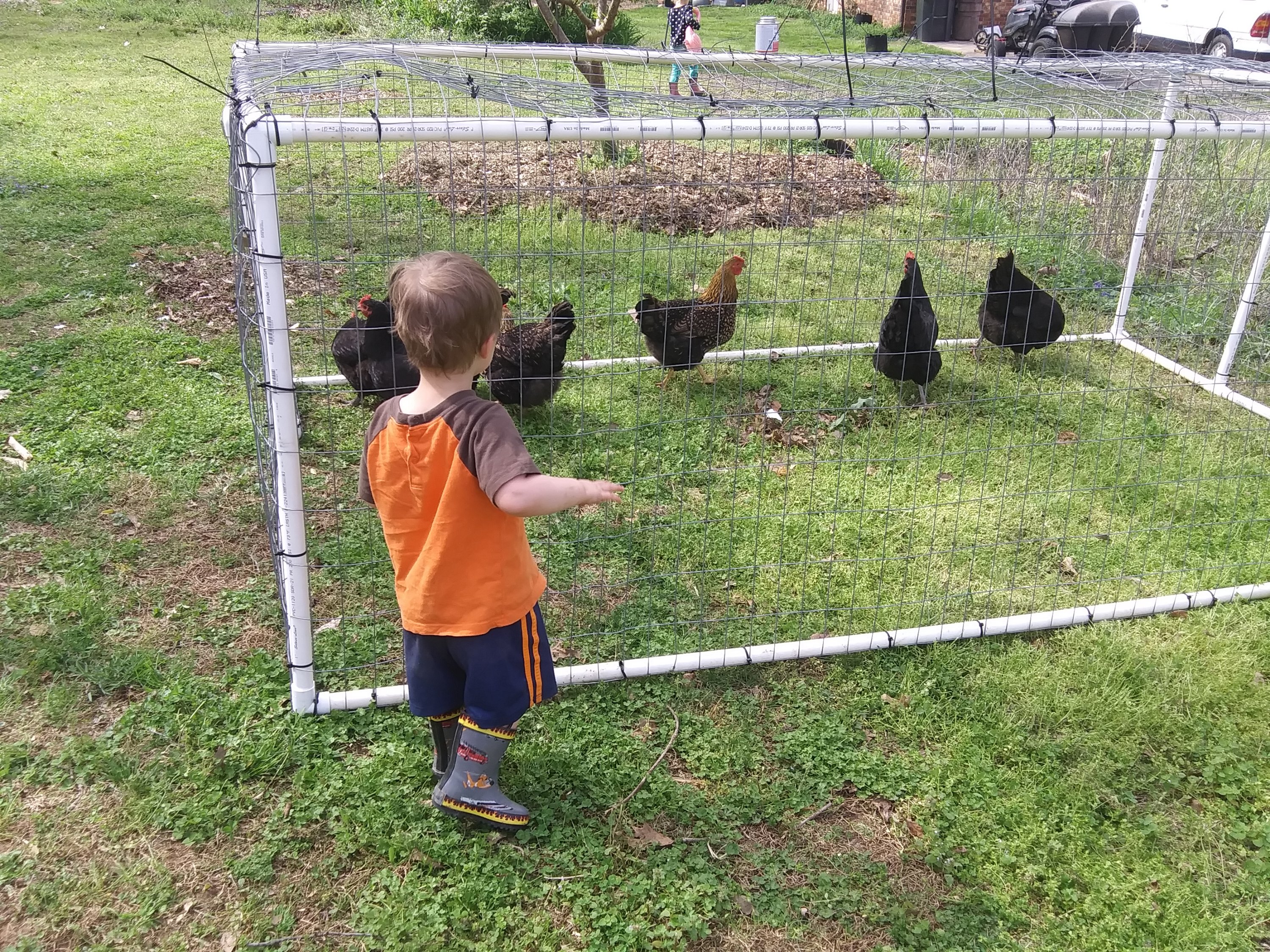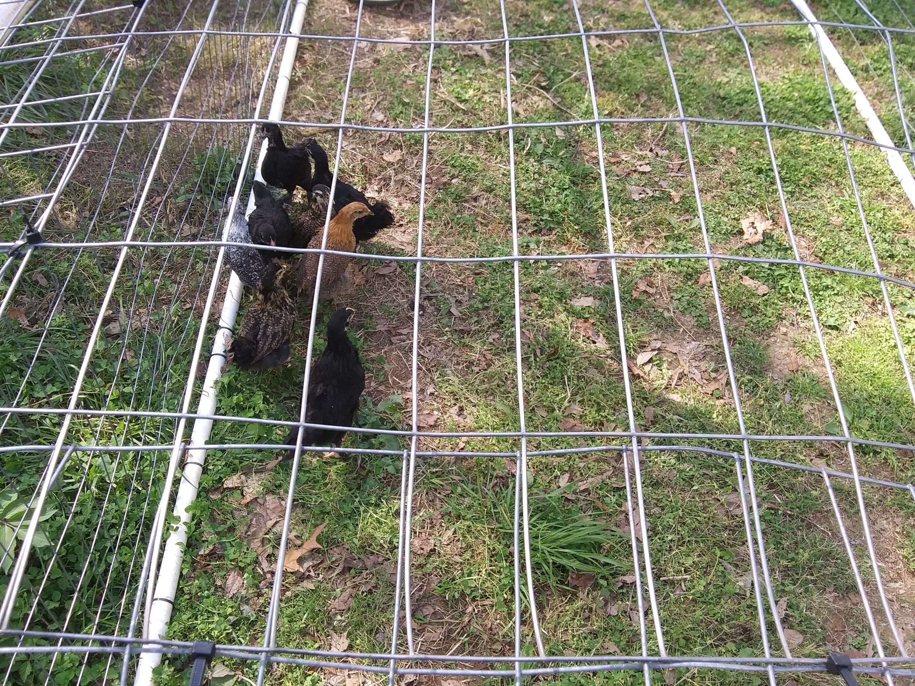 We have also been working to integrate our baby chicks with our existing flock. They’re enjoying our mobile run.