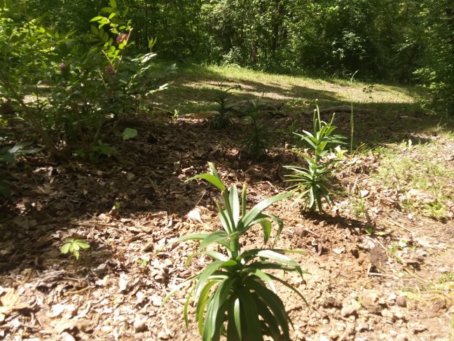 In the prayer garden, I planted 4 Easter lilly bulbs which were given to us by the church following the Easter Sunday service.