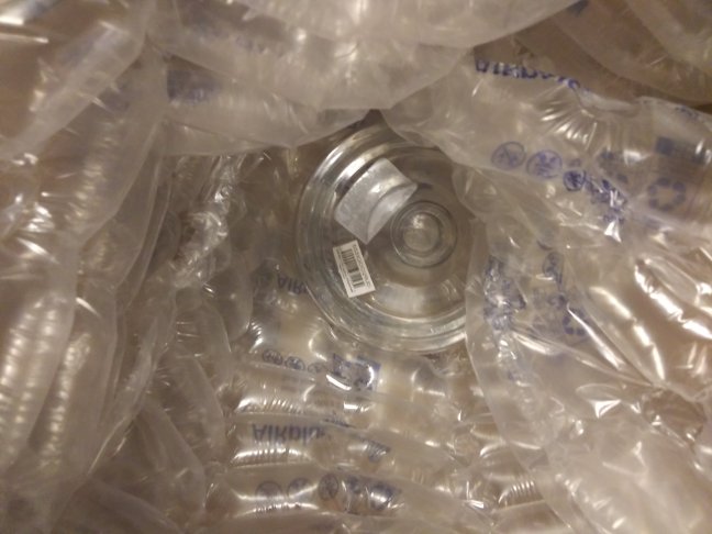 1.) They bulk order boxes and REEEEALLY didn’t want my lid to arrive to me broken, so they put it in a new box, which already had fragile markings and filled the extra space with those air packing pouches.