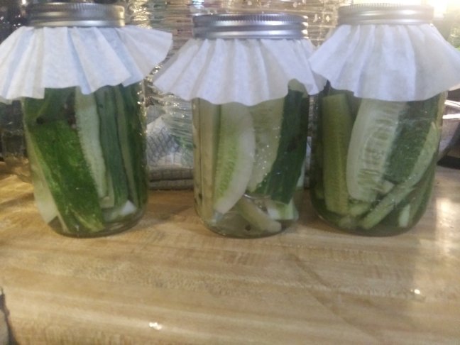 Right now I have some cukes (also overflow from friends) fermenting into hopefully tasty pickles, as I wait for cucumbers from our own garden.