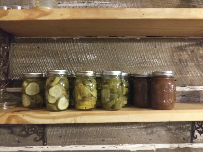 I also got several pints of pickles made. We tend to get our cucumbers in waves, so I gave some to the neighbors and made use of the rest today.