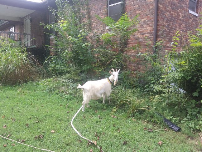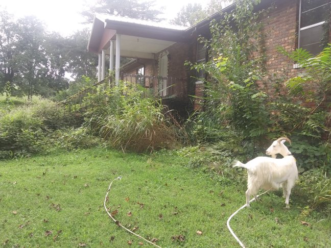 Remember how I had a landscaping specialist come out and offer suggestions and give an estimate? Well… That would’ve broken this homesteader’s bank. So I did what should have occured to me in the first place, and I just put my goats in the overgrowth. They had it tamed significantly in just 2 afternoons.