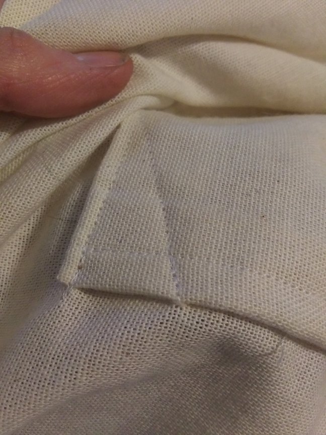Then with the pockets, I stitched an additional diagonal seam from the side seam to where the 1″ fold ended at the top to add a little durability to the pockets.
