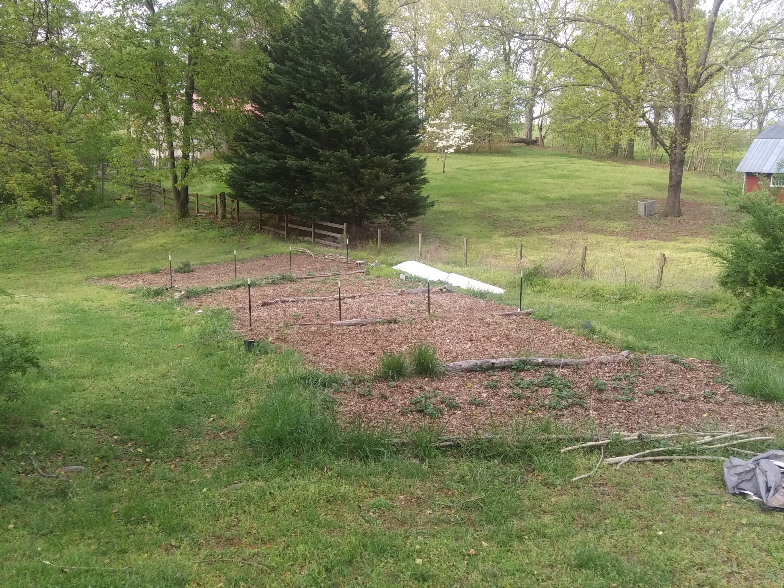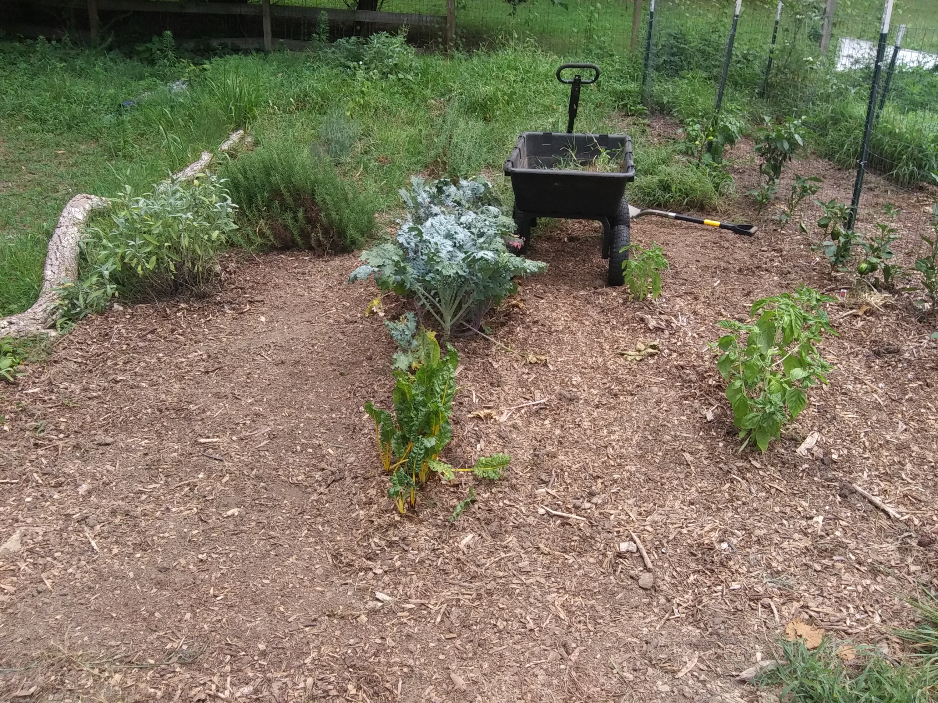 And that’s when I encountered the Back to Eden (B2E in my shorthand) gardening method. If you are unaware, I implore you to go to backtoedenfilm.com, watch the film, sign up for the free online summit, and glean all the knowledge and wisdom you can from Paul Gautschi and the other like-minded gardeners. To summarize, Back to Eden Gardening is nothing more than copying the growing methods of our Creator. In the fall, God causes the trees to drop their needles and leaves, and dead branches, forming a covering on the soil. The winter snows/rains provide water which allow the organic covering to decompose and create this marvelous, rich layer of compost. In the spring, the new plants burst forth, not lacking water, not lacking nutrients, simply thriving. By covering the soil with a layer of composting, whole-tree wood chips (leaves and branches are important, as the green leaves provide the nitrogen to burn up and decompose the wood) the soil is renewed, restored, and revived in a way that provides nutrients for plants as food, which in turn provide nutrients to us.