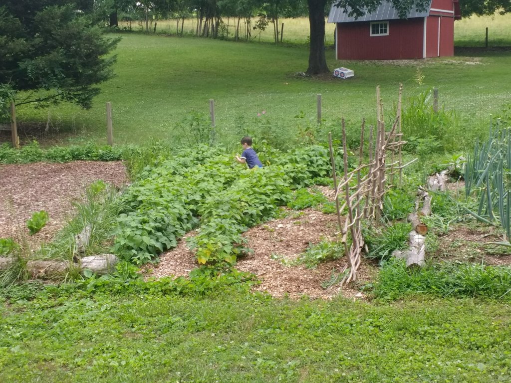 The Back to Eden film, or David Devine’s book, Growing Food God’s Way (which I’ve waited 3 years for it to come back in print and finally got a copy!) will answer many common questions people have about the B2E method. Isn’t it just the same as no-till? What about termites? (That’s a big concern here in Tennessee, and I have to say, I’ve not seen a single evidence of termites in my composting wood chips. Ever.) pH, crop rotation, weeds, irrigation- none of those issues exist to the extent they do in tilled earth gardens. The caveat is that our world is fallen. Creation IS in fact groaning, and weeds, drought, pests, disease are all evidences of the fall. But I will say that when I am diligent about tending the gardens, I do not have those issues. My issues become that I don’t have enough people to help me pick all the strawberries and green beans and my tomatoes snap the vines, they’re so prolific!