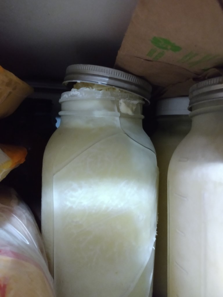 The “milk gap” or dry period between freshenings is a challenge I had planned for and in theory, overcome last year. However, I did make the mistake of freezing milk in 1/2 gallon mason jars. It works with pesto, why not milk?
