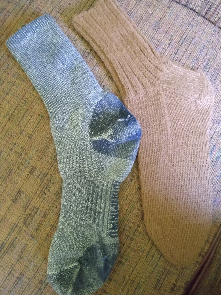 And this is sock #1 of 2, that I’ve been promising my husband since last Christmas. It took a long time to get the “local” yarn in. I had originally wanted to work with some yarn made from Icelandic sheep wool, because we are debating adding Icelandics to the homestead later on. But what I got was alpaca. And seeing as the shop was having a hard time during lockdowns, I just accepted my skein of alpaca yarn and decided to see what it would behave like in socks. It isn’t super soft, nor does it have a lot of memory or stretch. It wouldn’t be my first choice for sock yarn, but it made a decent boot sock and the durability of the reinforced heel I did is comparable to the store-bought boot socks my husband has worn out.