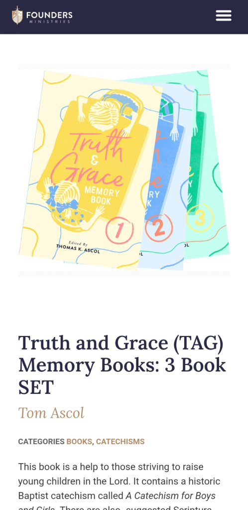 Our church takes a “winter break” from Wednesday night Bible study from Nov-Jan, I guess because so many people travel for the holidays. I certainly don’t. But in place of our usual Wednesday night activities, my husband decided we should go throughĀ the Baptist Catechism, and he chose the Truth and Grace books from The Founders website. The books are put together by age appropriate question-answer style catechism with scripture to memorize, hymns, and is what we thought, a great starting point for theology for our littles.