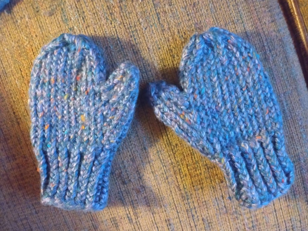 I made mittens for my 3 youngest children. Last year, I made scarves for the youngest kids, and my oldest said he’d prefer socks. So this year, I asked him about mittens, and he said he’d prefer a scarf… Go figure. Next year, I imagine he’ll be wanting mittens. If time allows, I’ll finish up both the scarf and the mittens for him and maybe next year can be sock-a-palooza for everyone.