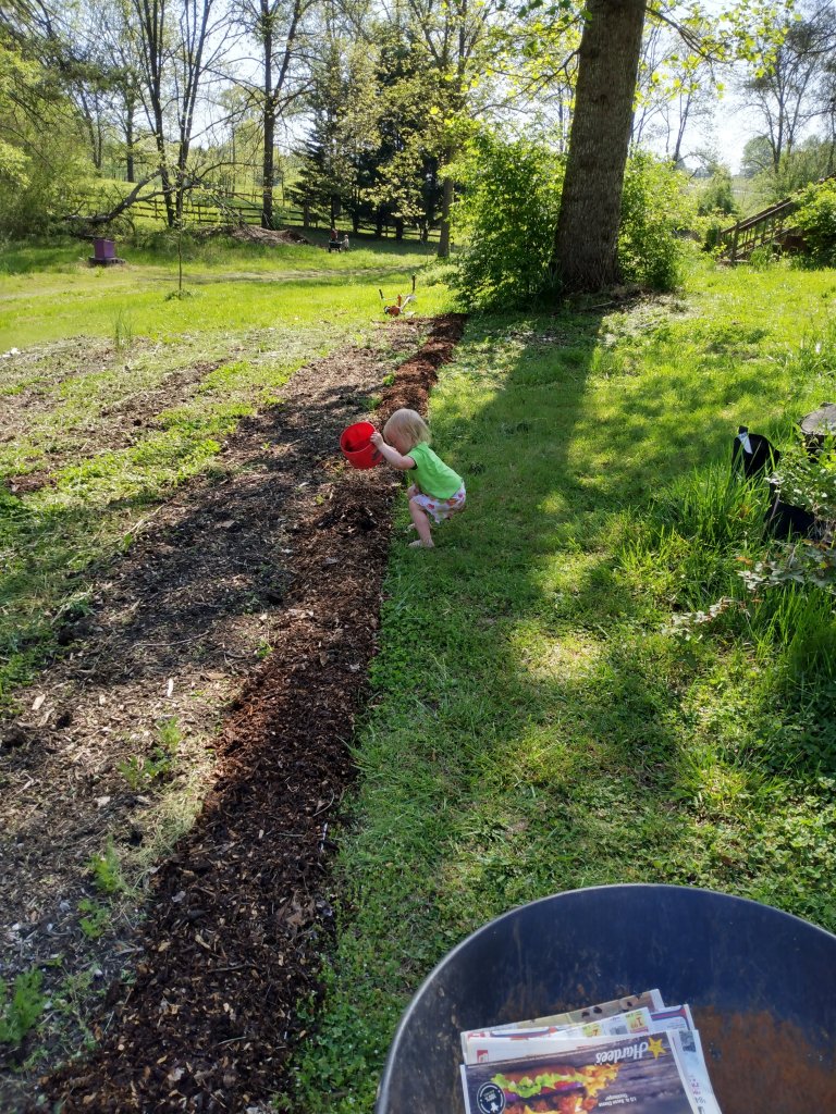 So I’m ready now to go deep and really walk with the Lord, and I’m aware of all the ways in which I need to be more intentional. The kids and I worked on wood-chipping the paths and perimeter of the market garden rows. It took literally all day, from 9:00am when we got started, until 4:00pm when we cleaned up for dinner; naptime and lunch notwithstanding. But we’re seeing progress! And the small acts of diligence, obedience, and faithfulness led me to praise God; Look what You enabled a waddling pregnant woman to accomplish because of the blessings of my children to help!! Yay, God!!! And I was so so so grateful for my children and their love of playing in dirt, and their desire to contribute to our family’s well-being.