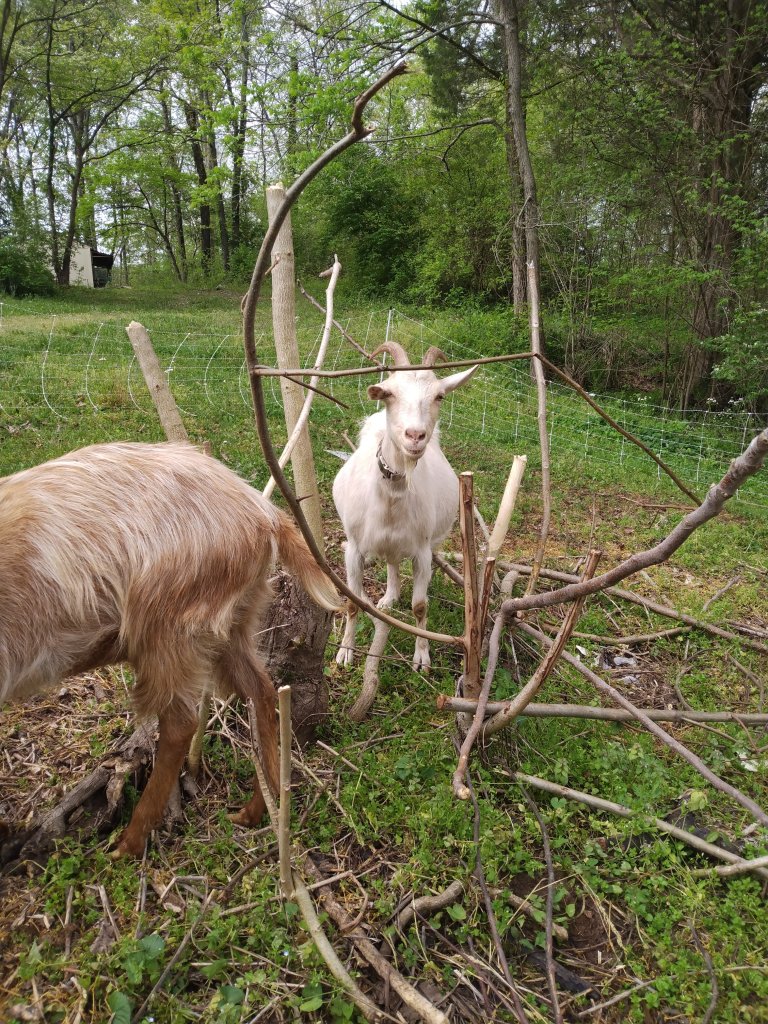 The others are busy at work clearing out an area that gets pretty overgrown for us. And they’re loving the purple dead nettle, and cleavers, and red bud, tulip poplar, and sassafras shoots.
